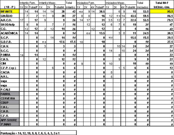 » Resultados - Encontro Nacional de Infantis e Iniciados em Maontemor o Velho